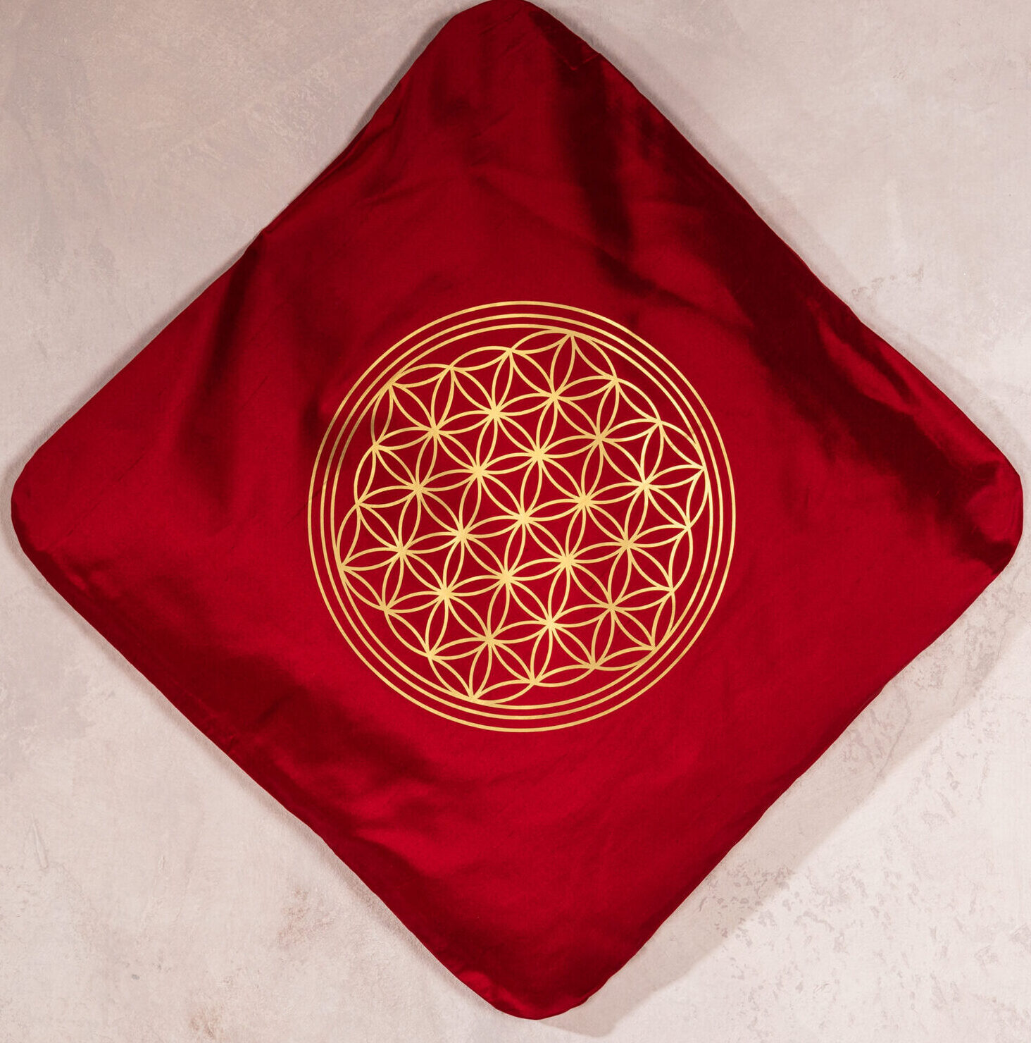 100 % Seide, Hülle mit der Blume des Lebens bedruckt, mit 50 g 100 % Seide  gefüllt (Maulbeerseidenfüllung), Hülle Baumwolle – Set
