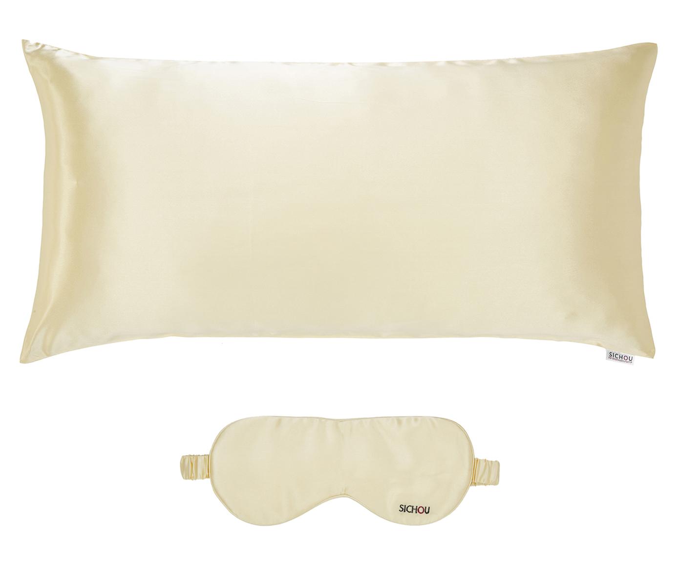 Seidenkissenhülle, Kissen und Schlafbrille mit Seide gefüllt